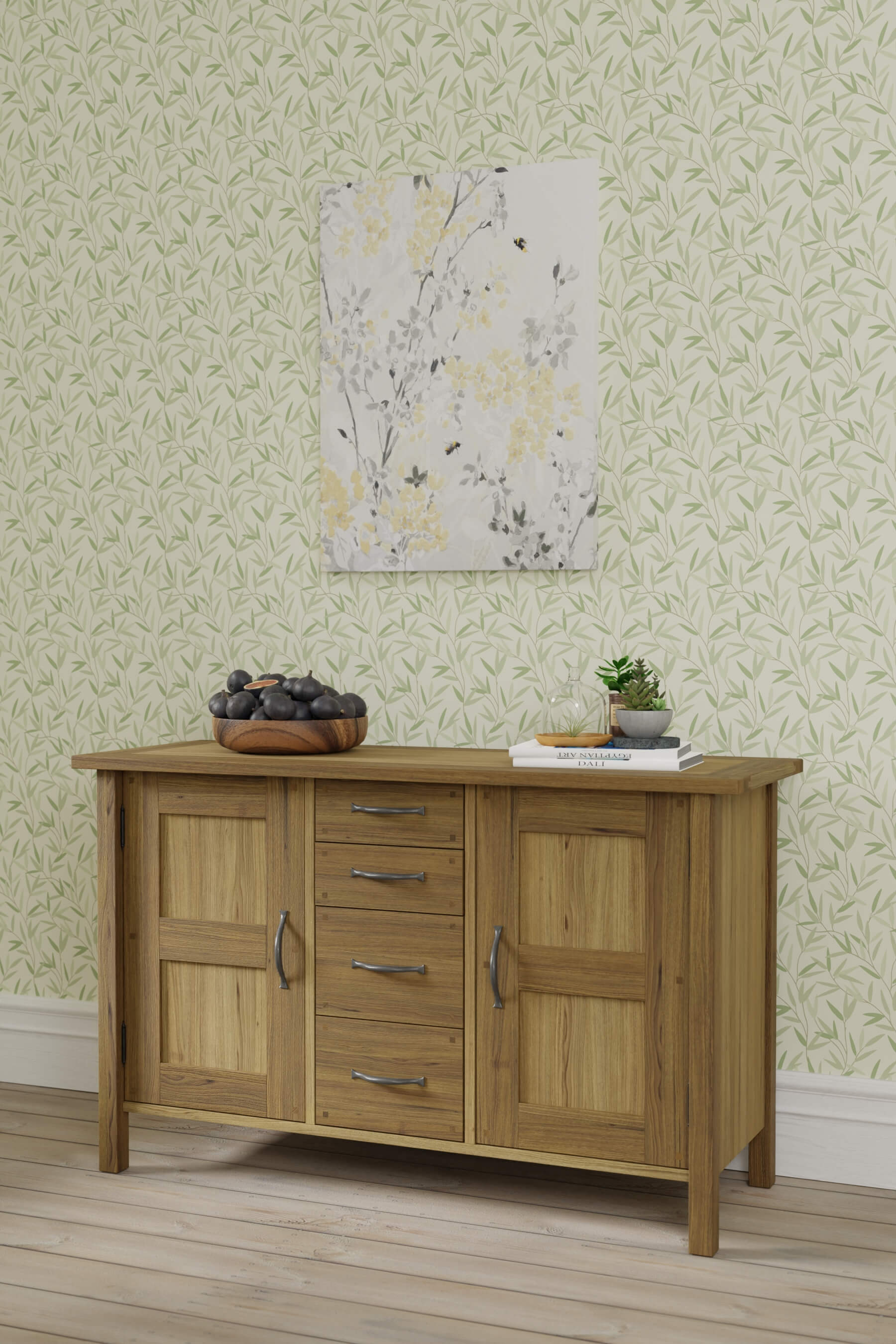 Milton 2-door chest of drawers with 4 drawers will make your living room more spacious. The drawers are mounted on traditional wooden rails, with a handy, adjustable shelf behind the two panelled doors. The chest is made of solid oak and veneer, with a high-quality oil finish. It is an expertly crafted, durable and timeless piece of furniture. The antique pewter handles add charm to this versatile piece of furniture.