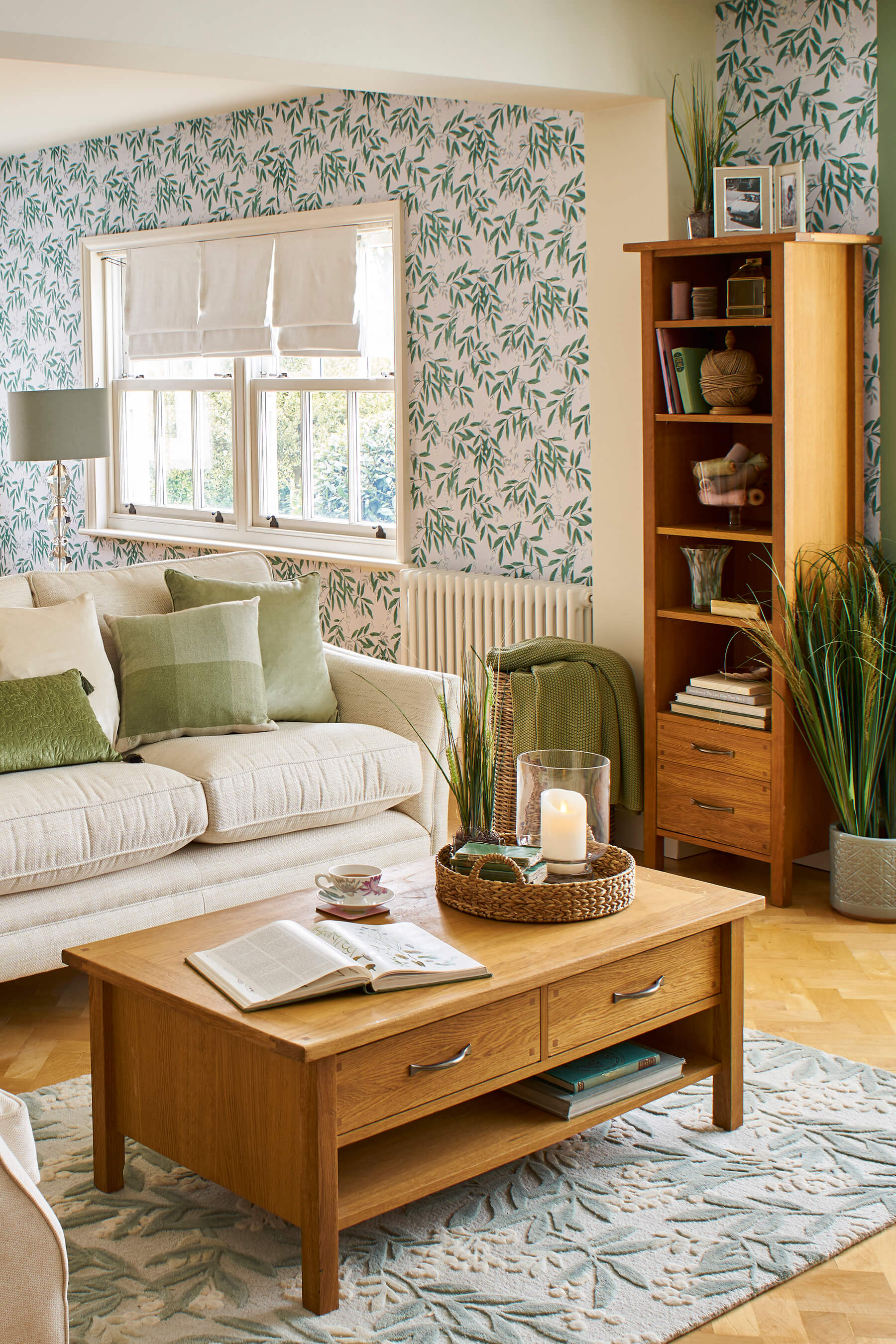 The Milton oak coffee table with 2 drawers will enhance any living room. It has two roomy drawers and a shelf at the bottom. The furniture is made of solid oak and veneer. This stunning piece of furniture is durable and timeless, and its beauty is enhanced by its fine oil finish. The coffee table has traditional joints, with antique pewter handles adding to its charm. The worktop shows the natural qualities, texture and colour variations of the wood, which can be further enhanced by occasionally rubbing a little oil into the furniture.