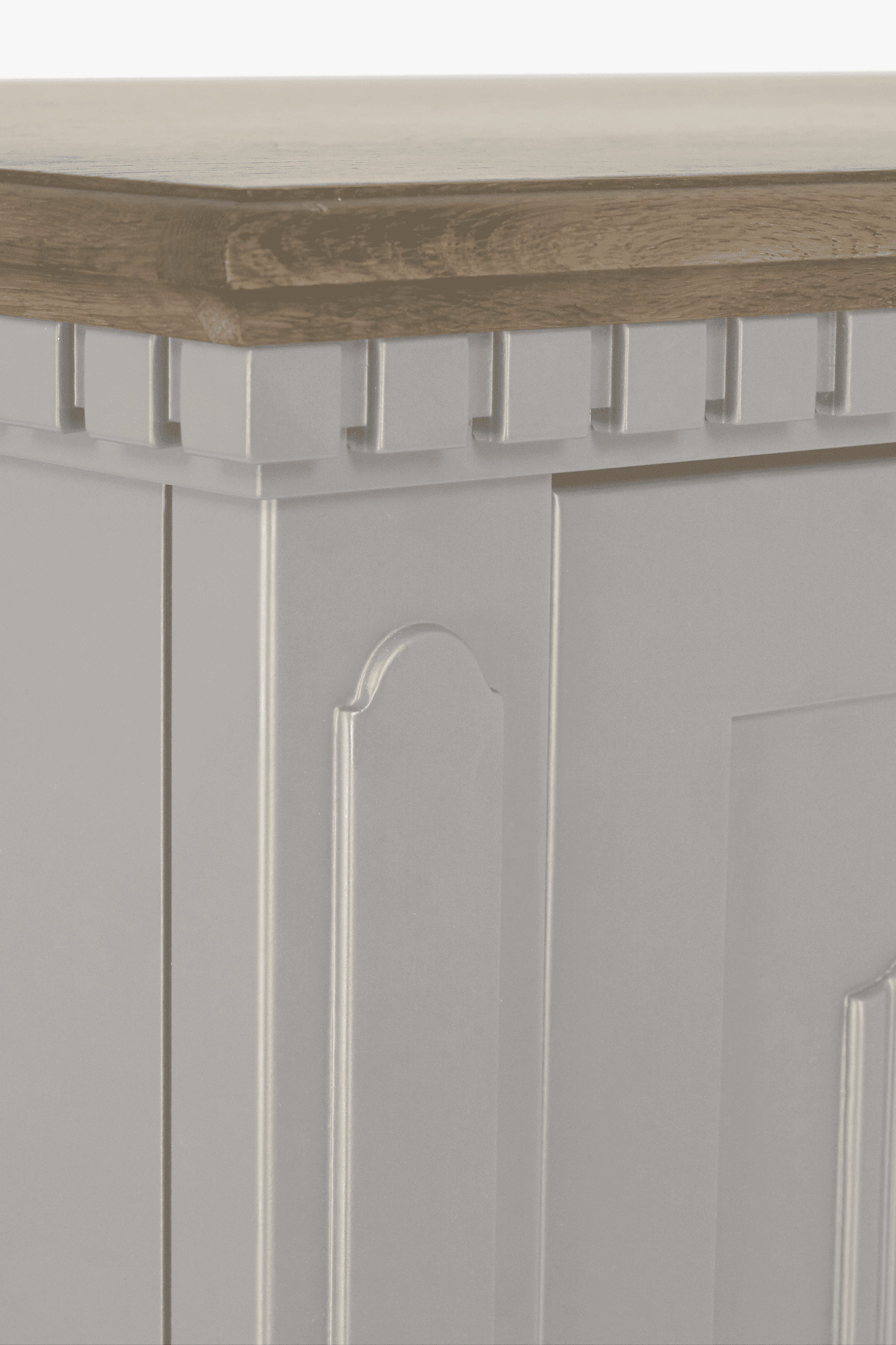 Hannover kummut on pilkupüüdev, neoklassikalises stiilis. Tal on kaks ust ja reguleeritav riiul. Kummut on värvitud ning kombineeritud tammepuiduga. Ustel on triibumustriline elegantne freesing ja pealmise plaadi all servas on ruudumotiividega dekoratsioon. Kummutil on minimalistlikud tinavärvi käepidemed. See elegantne kummut kaunistab kindlasti iga kodu